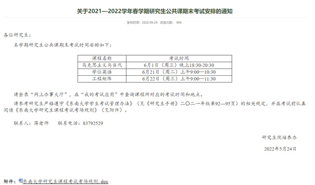 关于2021-2022学年春学期研究生公共课期末考试安排的通知
